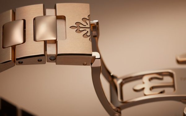 Introducing the Patek Philippe Nautilus 5712-1R-001, a masterpiece of horological artistry, crafted from luxurious 18k rose gold. This 40mm timepiece embodies the distinctive Nautilus design with its porthole-inspired case and beautifully embossed dial, appealing to those who appreciate classic elegance combined with modern functionality. The dial of this watch features a stunning brown color with a subtle gradient effect, complemented by rose gold applied hour markers and numerals that are both stylish and legible. It includes an intuitive moon phase display, small seconds sub-dial, and date indicator, which are not only functional but enhance the watch’s aesthetic appeal. Additionally, a power reserve indicator ensures that the wearer is always informed about the watch’s status, making it as practical as it is beautiful. Powered by Patek Philippe’s Caliber 240 PS IRM C LU, this self-winding mechanical movement is renowned for its precision and reliability. The sapphire-crystal case back allows an unobstructed view of the intricate movements, showcasing the refined craftsmanship Patek Philippe is known for. Completing this exquisite timepiece is a matching 18k rose gold bracelet, which fits comfortably and securely with a fold-over clasp. The watch’s water resistance up to 60 meters makes it suitable for various occasions, from formal events to casual outings.