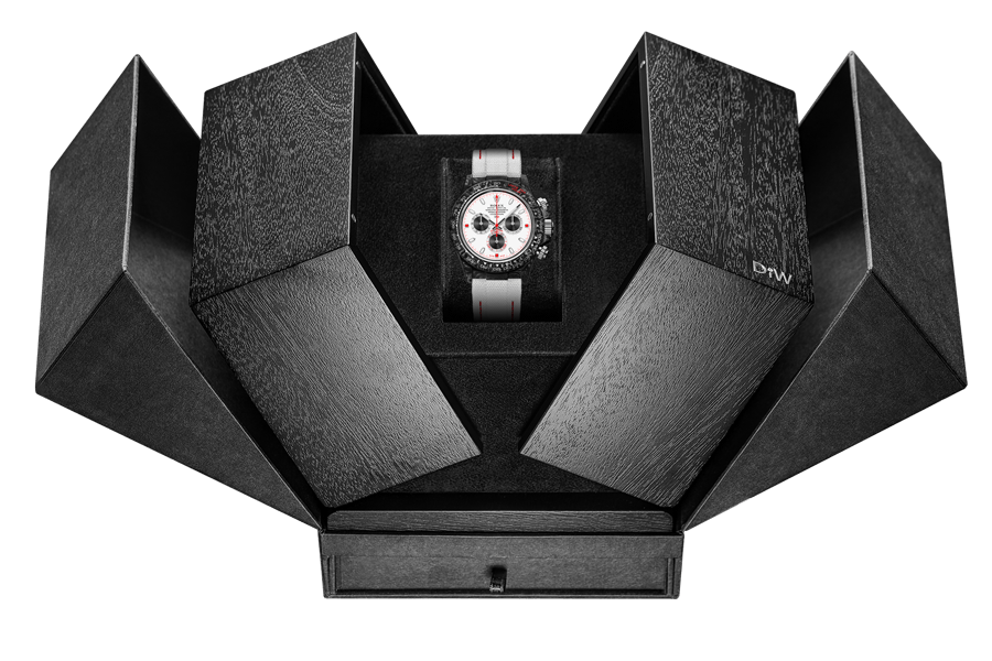 We re imagined the Rolex Daytona by crafting the lightest one in the world, this upgraded version of the legendary “Speedster” comes in lighter color tones. The overall weight, thanks to carbon fiber, is less than 50 gramms!