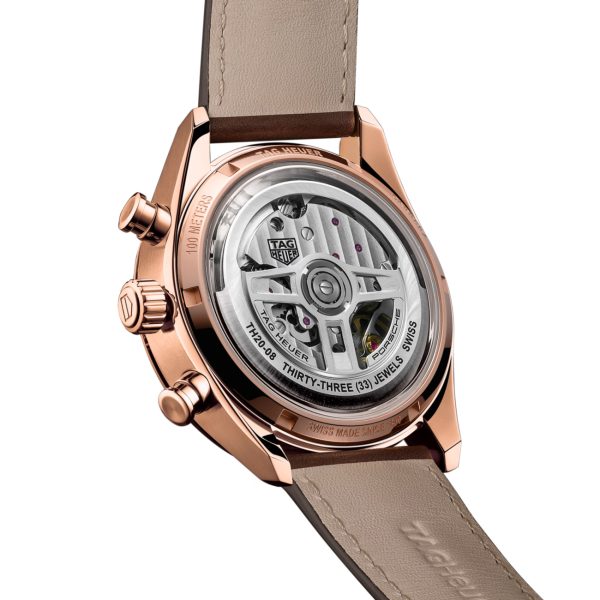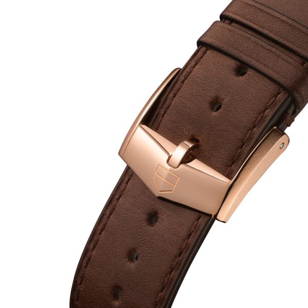 Luxurious 18K 5N solid rose gold makes up this high-end TAG Heuer Carrera, designed to celebrate the birth of the Carrera and the legendary Porsche 911.
