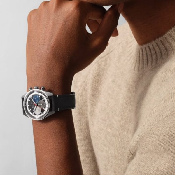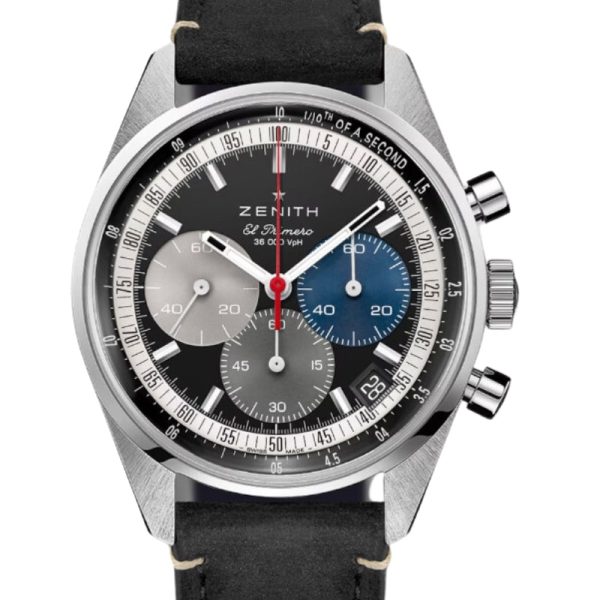 The CHRONOMASTER Original is crafted in a 38mm steel case in the same proportions as the A386, paired with a reimagined black tricolour dial and a black calfskin strap. Powered by the El Primero 3600 automatic high-frequency chronograph movement with 1/10th of a second chronograph function and a power reserve of 60 hours.